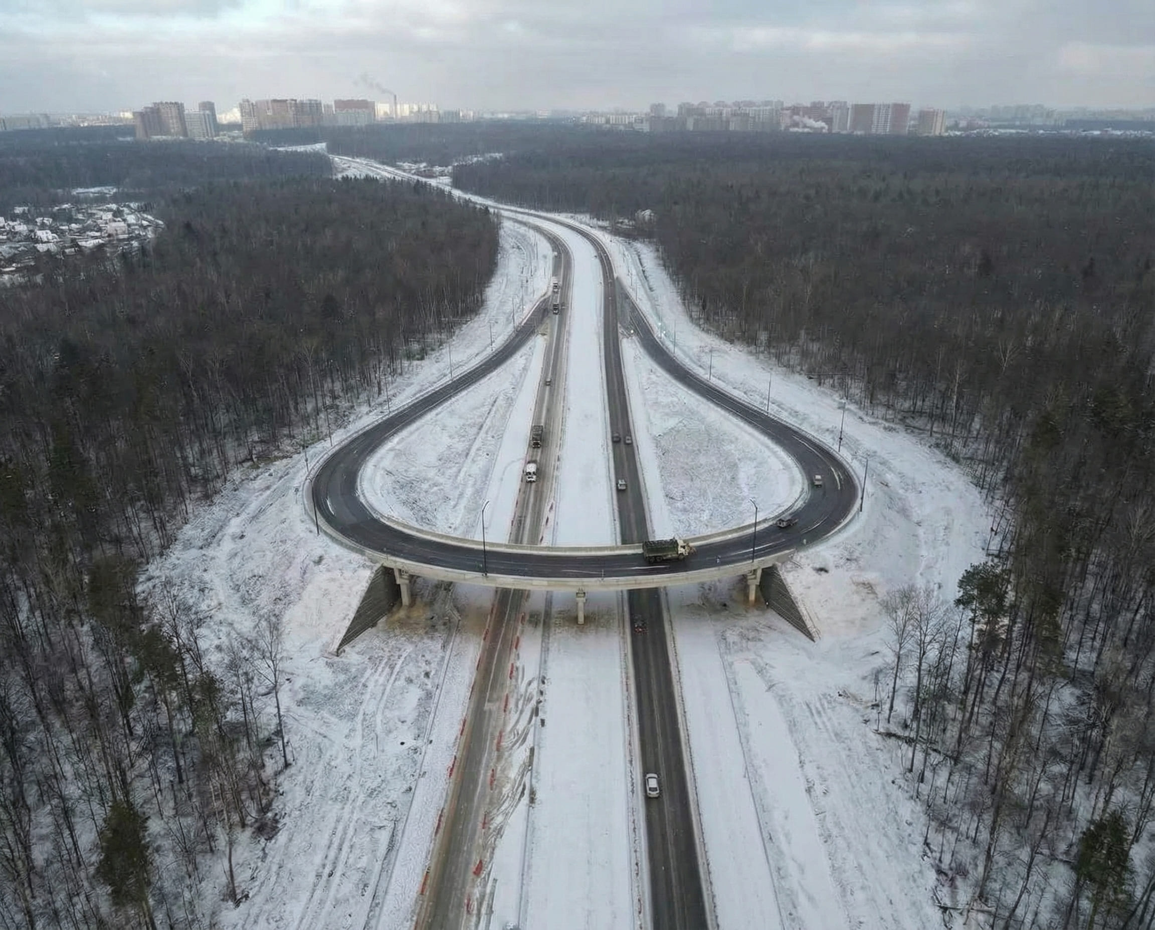 Создание магистрали потребовало переноса существующих коммуникаций, прежде всего — высоковольтных сетей. Для этого демонтировали более 40 опор и реконструировали четыре ЛЭП 110 кВ, освободив территорию для дорожных работ. Воздушные провода заменили подземным кабелем общей протяженностью свыше 7,5 км.На двух участках напряжением 220 кВ вместо старых опор смонтировали четыре стальные многогранные конструкции. Сооружения высотой почти 40 м гарантируют безопасную работу ЛЭП прямо над скоростным потоком машин, включающим крупногабаритный транспорт.